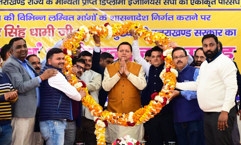 मुख्यमंत्री ने कहा कि राज्य सरकार ने डिप्लोमा इंजीनियर्स महासंघ की वर्षों से लम्बित समस्याओं का समाधान किया है। विभिन्न अभियन्त्रण विभागों में काम कर रहे कनिष्ठ अभियन्ता और अपर सहायक अभियन्ताओं के लिए वाहन भत्ते में वृद्धि करने के निर्णय के साथ, प्रथम बार सहायक अभियन्ताओं को भी वाहन भत्ते के रूप में 4000 रुपए अनुमन्य किए गए हैं, साथ ही 1000 कनिष्ठ अभियन्ताओं को 10 वर्ष की निरन्तर सेवा पर उच्च वेतन का लाभ प्रदान किया गया है। कनिष्ठ अभियन्ताओं को अपर सहायक अभियन्ता के पदों में वेतन विसंगति को दूर करने का निर्णय भी लिया गया है । इससे निश्चित ही सरकार के प्रयासों के माध्यम से कनिष्ठ अभियन्ताओं और सहायक अभियन्ताओं के मनोबल में वृद्धि होगी। मुख्यमंत्री ने कहा कि सरकार जनता की परेशानी को अपनी परेशानी समझकर उसका निदान कर रही है। प्रधानमंत्री नरेंद्र मोदी ने सबका साथ, सबका विकास, सबका विश्वास और सबका प्रयास के साथ चलने का मंत्र दिया है। हम समाज के अंतिम छोर पर खड़े व्यक्ति तक पहुंचकर उसकीसमस्याओं का समाधान कर रहे हैं। देवभूमि को देश का श्रेष्ठ राज्य बनाना हम सब की सामूहिक जिम्मेदारी है। इस अवसर पर प्रान्तीय अध्यक्ष, एस०एस० चैहान, महासचिव मुकेश रतूड़ी, संरक्षक डी.सी. नौटियाल, हरीश नौटियाल, यू.एस महर एवं अन्य लोग मौजूद रहे।