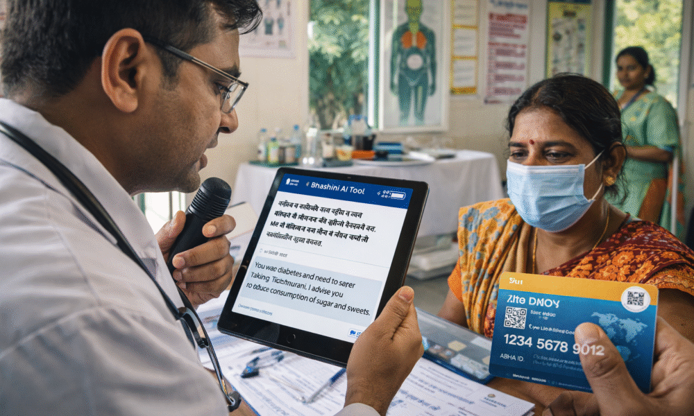 वर्तमान में, 85 करोड़ से अधिक नागरिकों के पास आयुष्मान भारत स्वास्थ्य खाते (ABHA) हैं। हालाँकि, ग्रामीण क्षेत्रों में भाषा की बाधा को एक मुख्य चुनौती माना गया है। भाषिणी के वॉइस-टू-टेक्स्ट और अनुवाद टूल्स के माध्यम से, डॉक्टर अब अपनी मातृभाषा में नोट्स बोल सकेंगे, जिससे इलेक्ट्रॉनिक स्वास्थ्य रिकॉर्ड स्वतः ही तैयार हो जाएंगे।