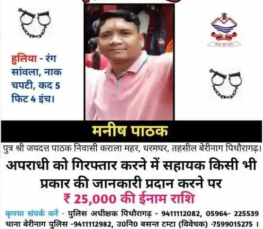 पिथौरागढ़। फरार चल रहे एक धोखाधड़ी के आरोपी के खिलाफ पिथौरागढ़ 25 हजार का इनाम घोषित किया है। आरोप है कि आरोपी मनीष पाठक पुत्र जयदत्त पाठक निवासी कराला महर, धरमघर तहसील-बेरीनाग पिथौरागढ़ ने लोगों को रुपए कमाने का लालच देकर लाखों रुपयों की ठगी की है। आरोपी के खिलाफ पुलिस ने संबधित धाराओं में मामला दर्ज किया है।