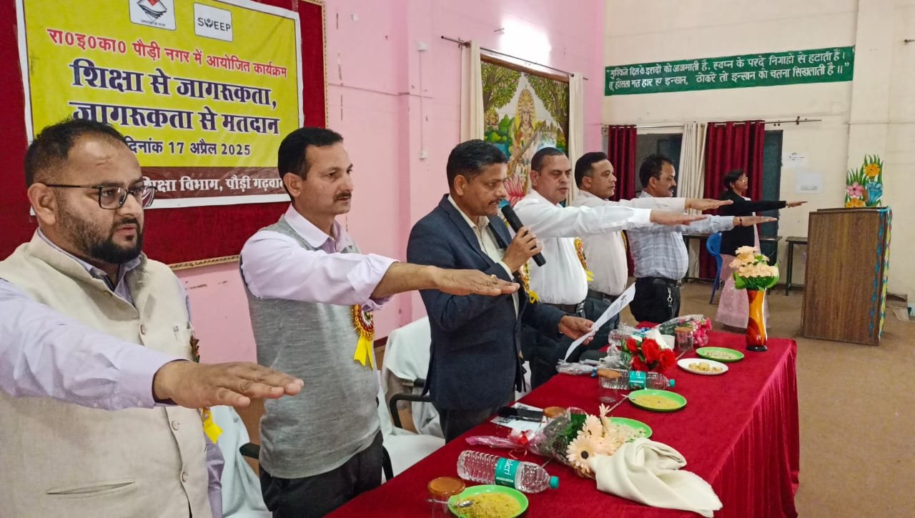 पौड़ी। निर्वाचन विभाग के तत्वाधान में स्वीप (Systematic Voters’ Education and Electoral Participation) के अंतर्गत आज राजकीय इंटर कॉलेज (जीआईसी), पौड़ी में एक महत्वपूर्ण मतदाता जागरूकता कार्यक्रम का आयोजन किया गया। इस कार्यक्रम की अध्यक्षता मुख्य विकास अधिकारी, गिरीश गुणवंत ने की, उन्होंने छात्रों को लोकतंत्र में मतदान के महत्व के बारे में विस्तार से जानकारी दी और उन्हें आगामी चुनावों में सक्रिय रूप से भाग लेने के लिए प्रेरित किया।