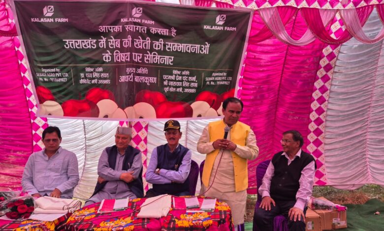 यह बात प्रदेश के कैबिनेट मंत्री डा. धन सिंह रावत ने आज सेबाग एग्रो प्रा0 लि0 द्वारा पौड़ी गढ़वाल के चोपड़ा (नौगांव) में कलासन फार्म में आयोजित सेमिनार में कही। ‘उत्तराखंड में सेब की खेती की सम्भावनाओं’ विषय पर आयोजित एक दिवसीय सेमीनार में बतौर विशिष्ट अतिथि डा0 रावत ने कहा कि उत्तराखंड में सेब उत्पादन की अपार सम्भानाएं हैं। उन्होंने कहा कि राज्य की जलवायु सेब उत्पादन के लिये काफी मुफीद है। ऐसे में यहां सेब उत्पादन को बढ़ावा मिल सकता है। डा0 रावत ने बताया कि राज्य सरकार इस दिशा में काम कर रही है और काश्तकारों के लिये कई योजनाएं चलाई जा रही है, जिनका लाभ काश्तकार उठा रहे हैं। उन्होंने बताया कि सेब की खेती को प्रोत्साहित करने के लिये सहकारिता विभाग की कृषि ऋण योजना के अंतर्गत एक हजार सेब के बगीचे विकसित करने का लक्ष्य रखा गया है। इसके लिये प्रदेशभर में सेब के 17 कलस्टर तैयार किये गये हैं। डा0 रावत ने बताया कि एप्पल मिशत के तहत अधिक से अधिक संख्या में सेब काश्तकारों को जोड़ा जायेगा ताकि जम्मू-कश्मीर व हिमाचल प्रदेश की भांति प्रदेश में सेब के बगीचे विकसित किये जा सके। उन्होंने सेब उत्पादन में विशेष पहचान बनाने के लिये सेब की गुणवत्ता व पैकिंग पर ध्यान देने की भी बात कही। उन्होने कहा कि इसके लिये किसानों को उन्न्त किस्म की प्रजातियों व वायरस फ्री पौधे लगाने के लिये प्रेरित किया जा रहा है। सेमीनार में दूरभाष के माध्यम से जुड़कर पतंजलि योगपीठ के अध्यक्ष व आयुर्वेदाचार्य बालकृष्ण ने अपने सम्बोधन में कहा कि उत्तराखंड के पास जड़ी-बूटियों से लेकर उद्यान के क्षेत्र में अथाह सम्भावनाएं हैं। इसके लिये ठोस कार्य योजना विकसित की जाना चाहिये और काश्ताकारों को योजनाओं का लाभ पहुंचाया जाना चाहिये साथ ही उन्हें समय-समय पर प्रशिक्षण भी दिया जाना आवश्यक है। इस अवसर पर कलासन फार्म के विक्रम रावत ने पहाड़ों में उच्च घनत्व वाले सेब के बाग की सफल स्थापना के बारे में जानकारी दी। उन्होंने सेब की खेती के लिये मिट्टी की तैयारी, रोपण दूरी, सिंचाई प्रणाली, प्रूनिंग थिनिंग और निराई के बारे में सेब काश्तकारों को कई टिप्स भी दिये। इस अवसर पर पदमश्री व वरिष्ठ काश्तकार प्रेमचंद शर्मा, पूर्व खेल मंत्री, उत्तराखंड नारायण सिंह राणा, कालसन फर्म एवं सेबाग एग्रो प्रा0 लि0 के प्रतिनिधि एवं स्थानीय काश्तकार उपस्थित रहे।